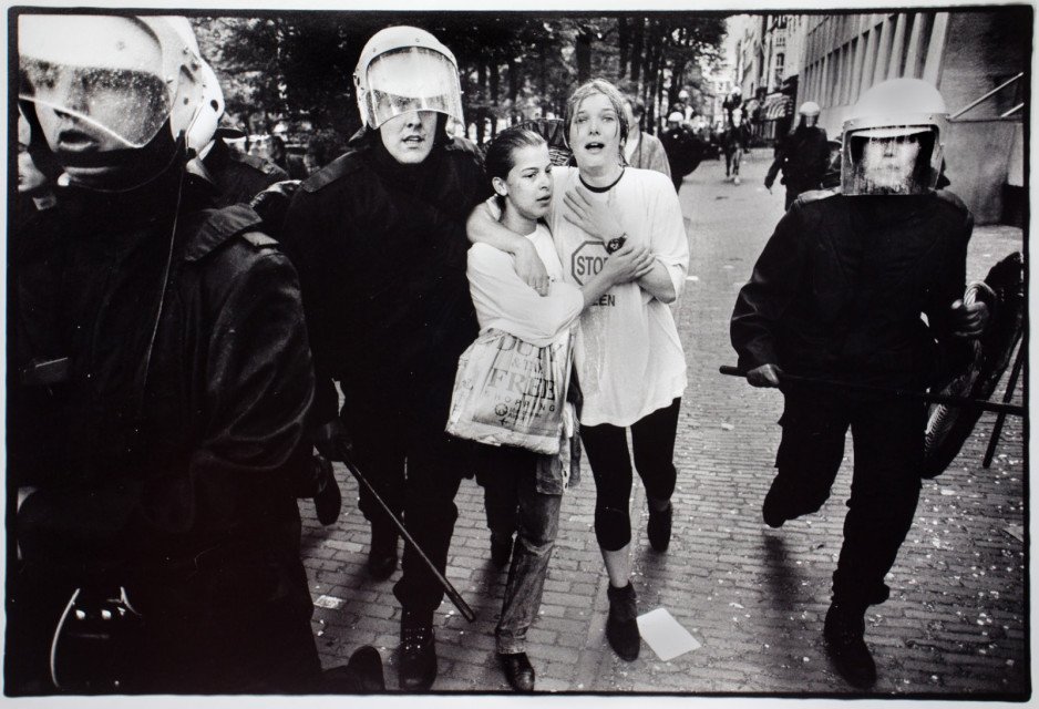 Nederland, 11/08/99 Werknemers van Stork in Amsterdam kijken tijdens de lunchpauze naar de zonsverduistering Employees of Stork construction company in Amsterdam are looking at the eclips